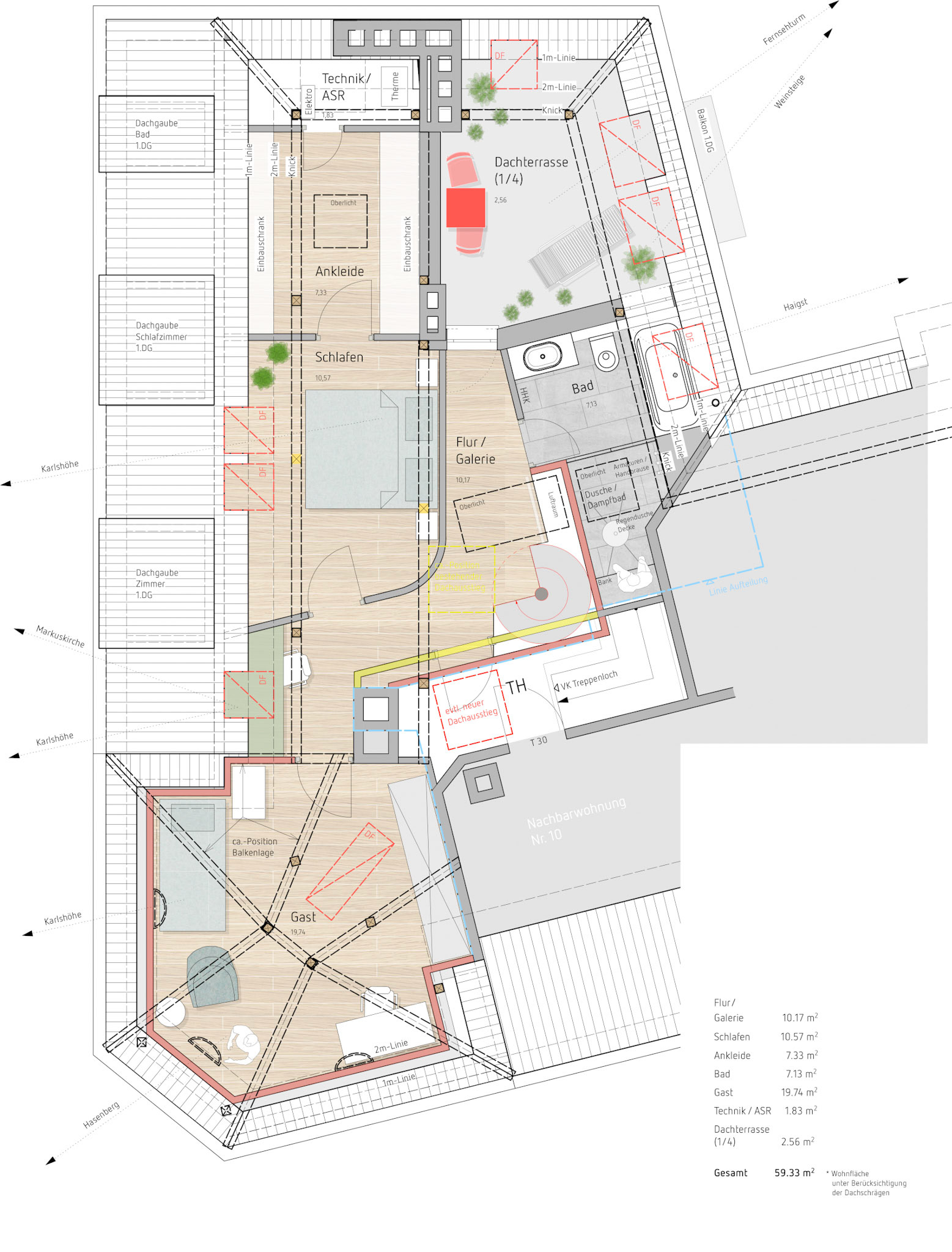 Gesamtwohnfläche: ca. 110 m², möglicher Ausbau Dach: zusätzlich ca. 60 m²