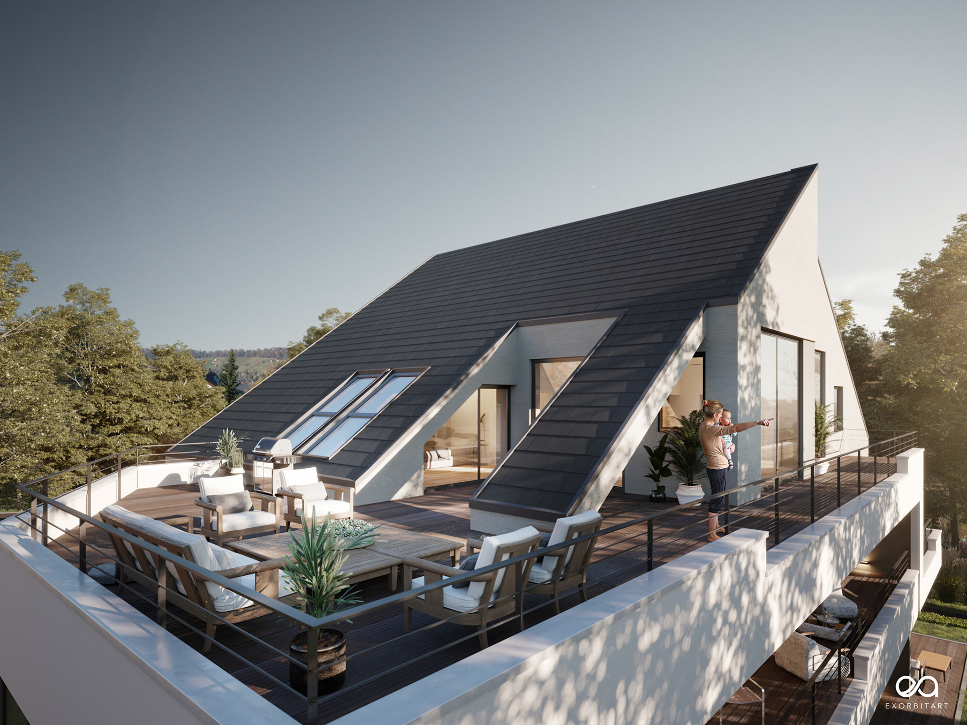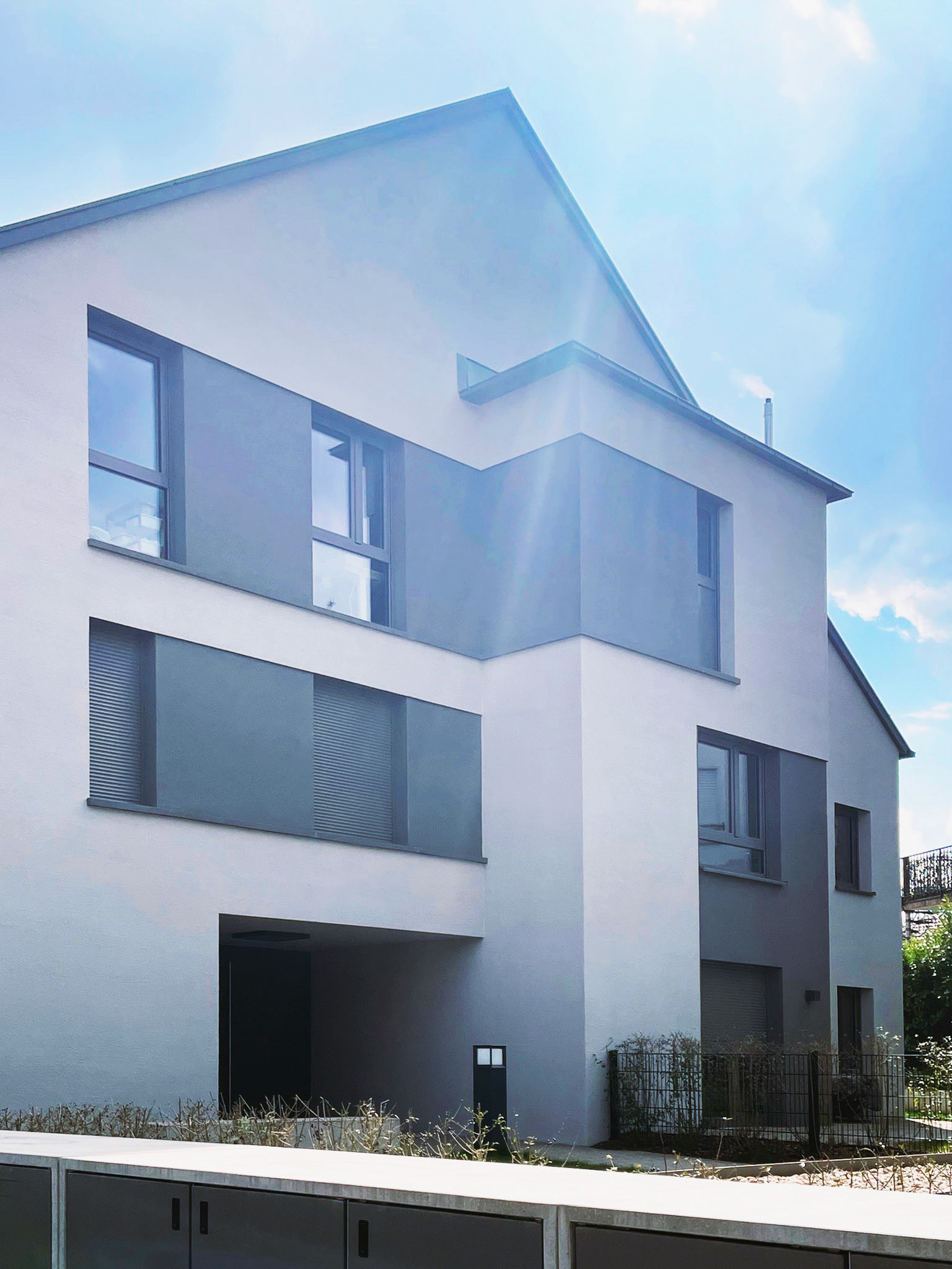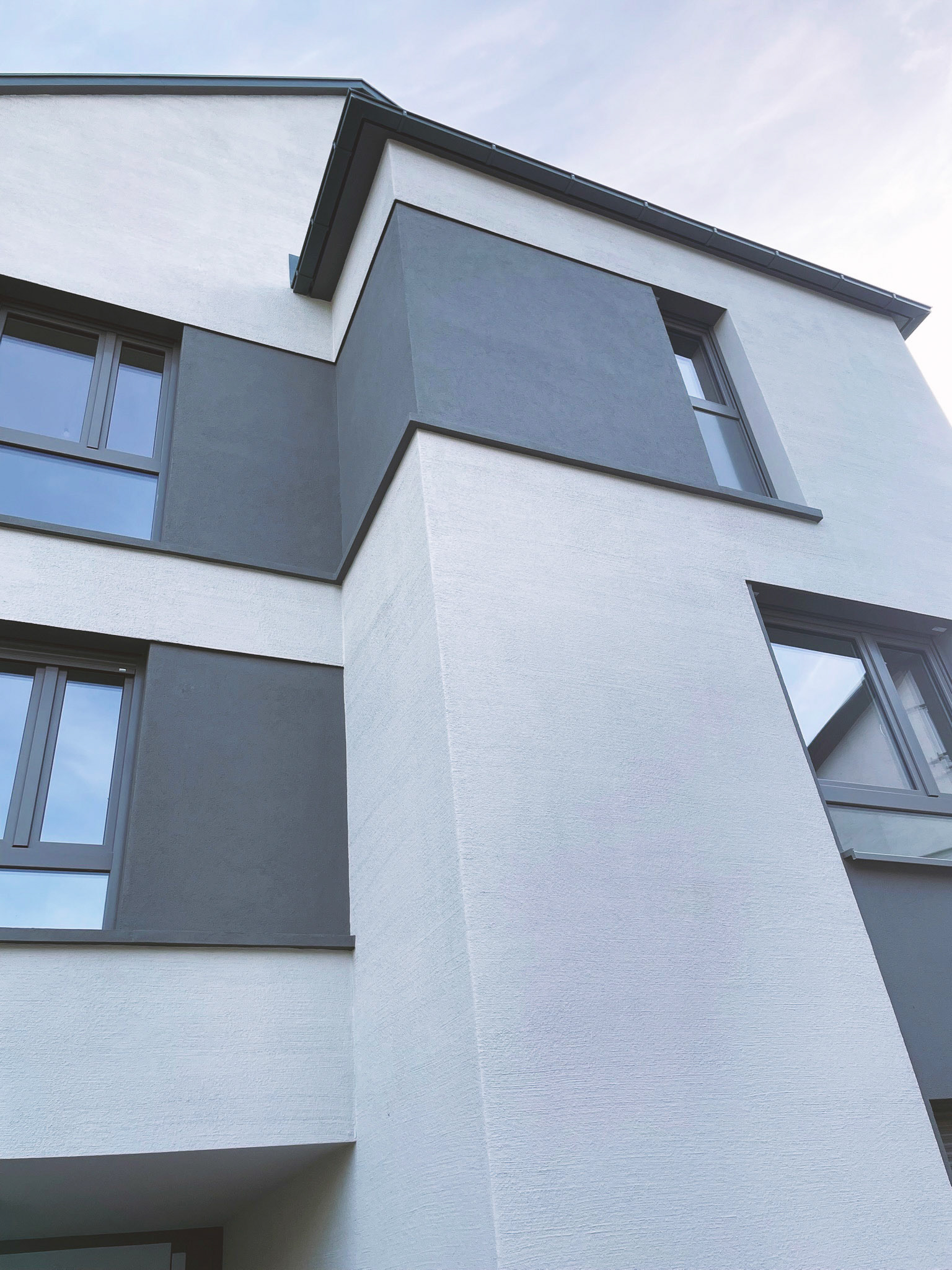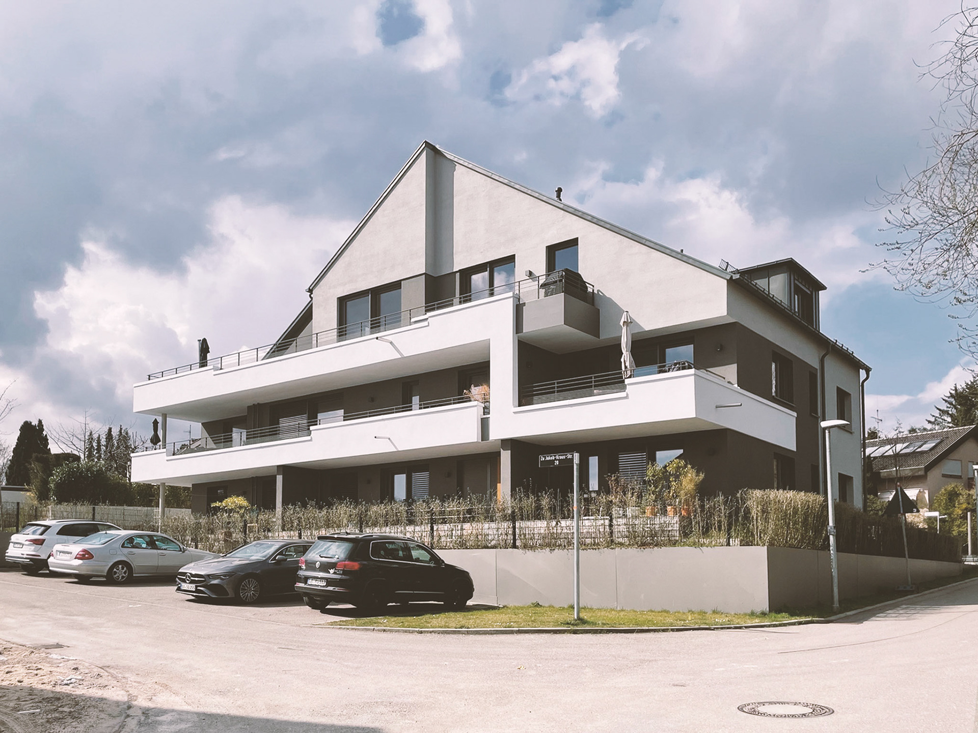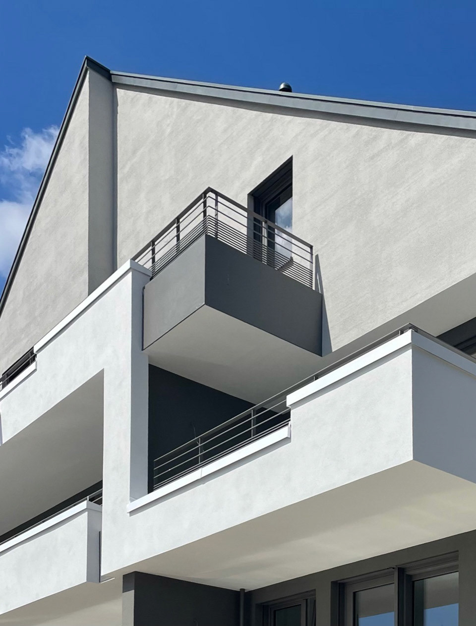 Das Gebäude wird wesentlich durch seine großzügigen Balkone und Terrassen geprägt, die als vorgelagerte Freiräume den Wohnraum erweitern und eine hohe Aufenthaltsqualität schaffen. Unterschiedlich gestaffelt und präzise in die Kubatur integriert, strukturieren sie die Fassade und verleihen dem Baukörper eine klare, horizontale Gliederung.
