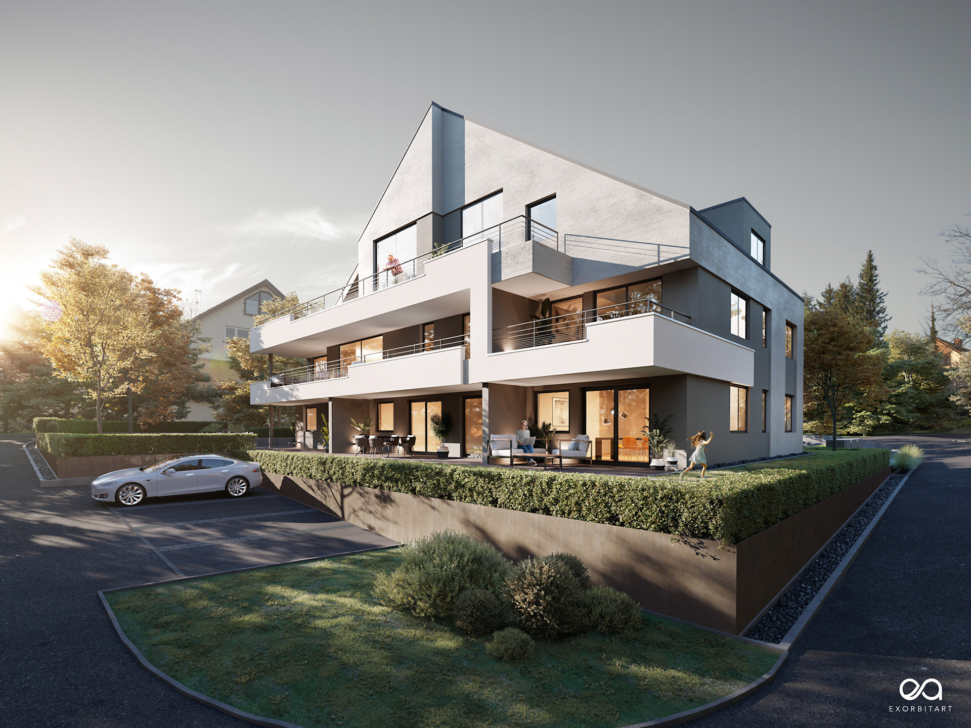 Wohnbebauung Mehrfamilienhaus mit Parkierung