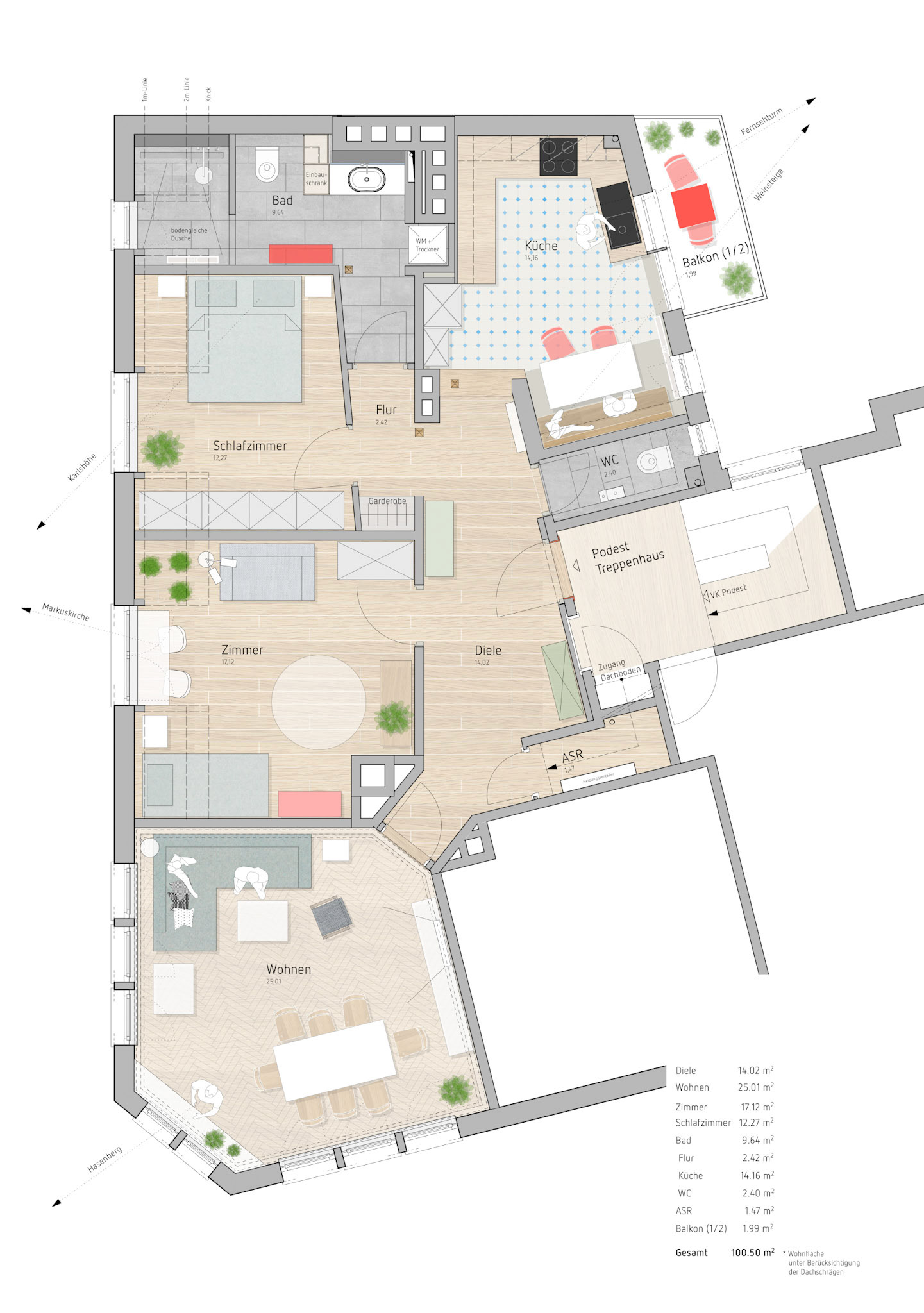 Gesamtwohnfläche: ca. 110 m², möglicher Ausbau Dach: zusätzlich ca. 60 m²